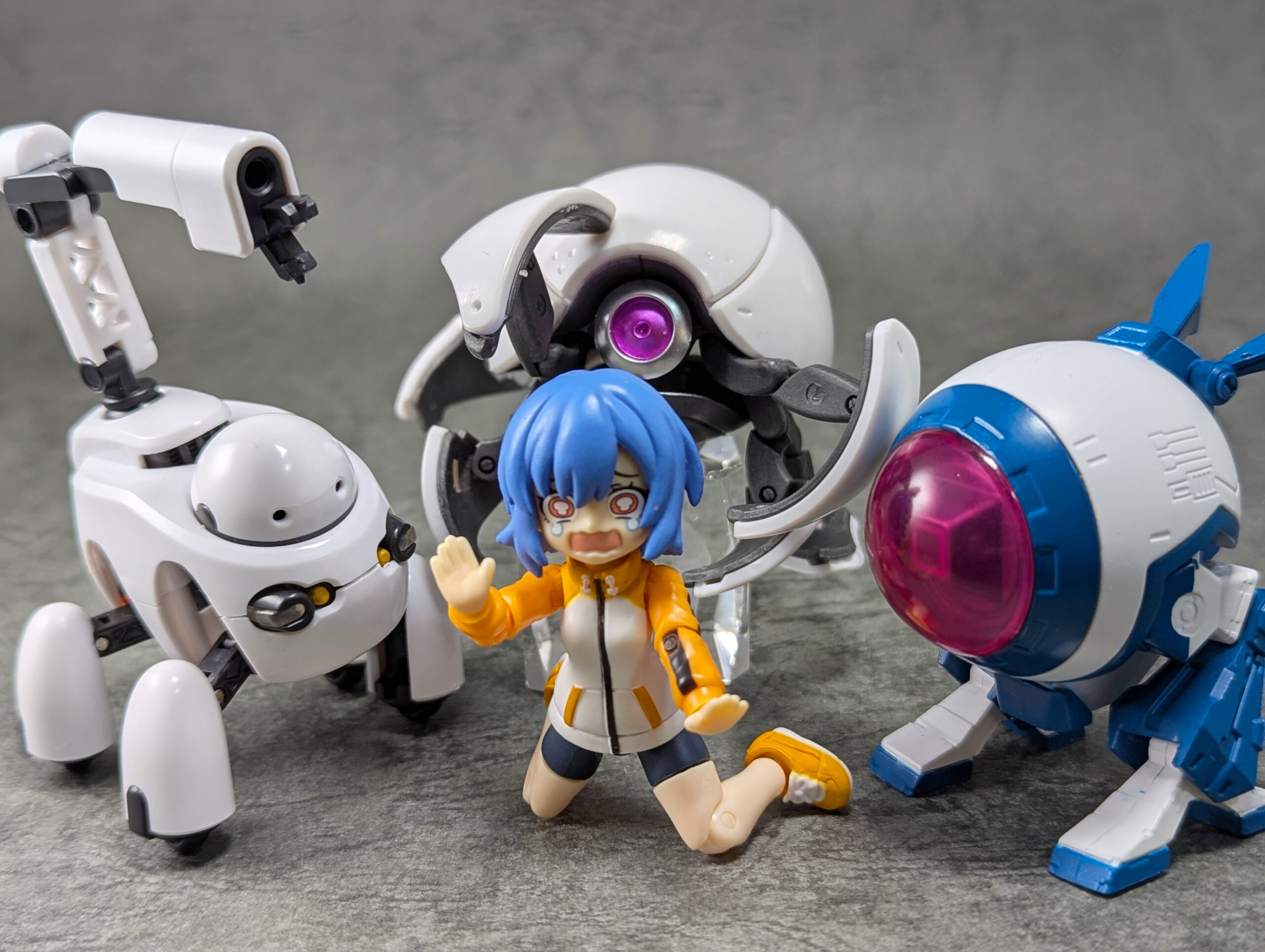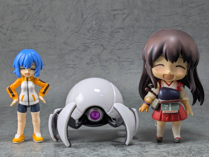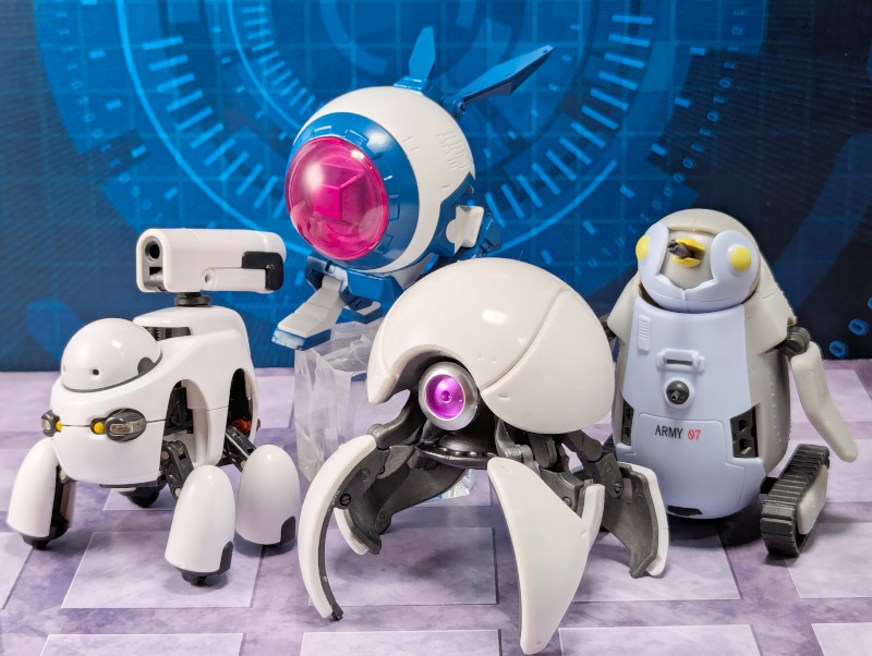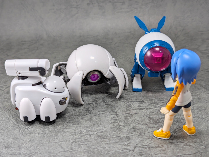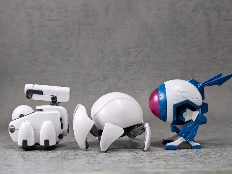最後に最近のカプセルトイのメカキャラと並べて。