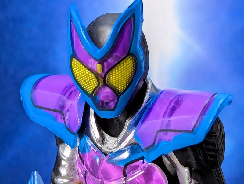 お顔の「仮面」も劇中同様の明るい青ライン塗装。