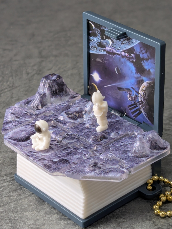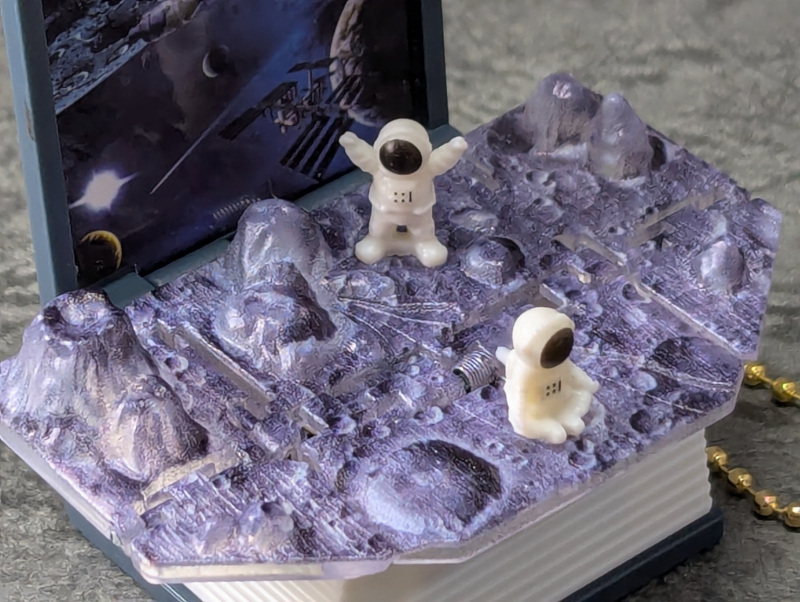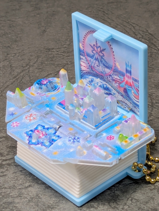 表紙が勢いよく開いて小さなジオラマがバシャっと展開!
