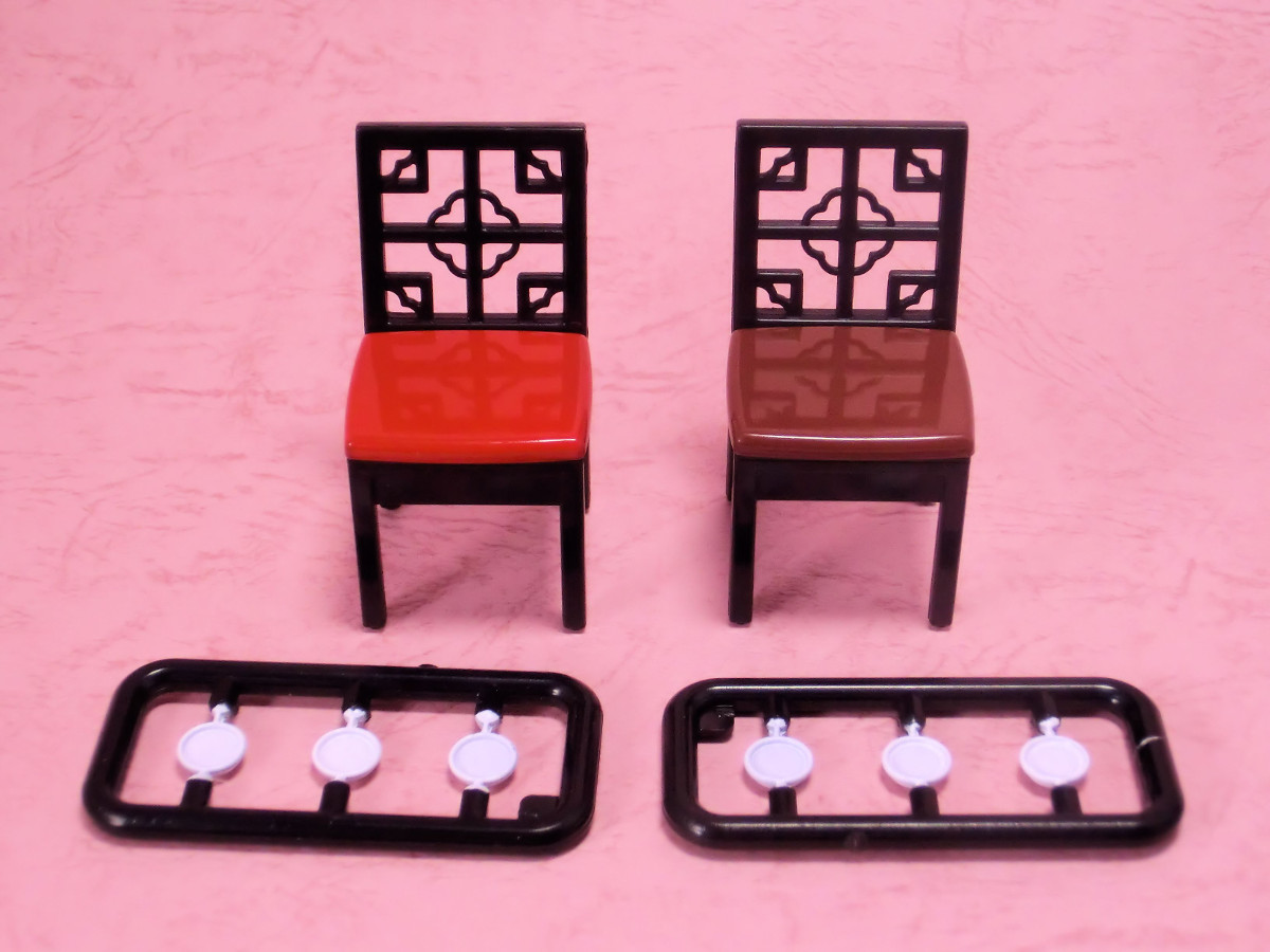 今回手に入れたのは「回転テーブル(レッド)」と「調味料入れセット付き 中華椅子」の
