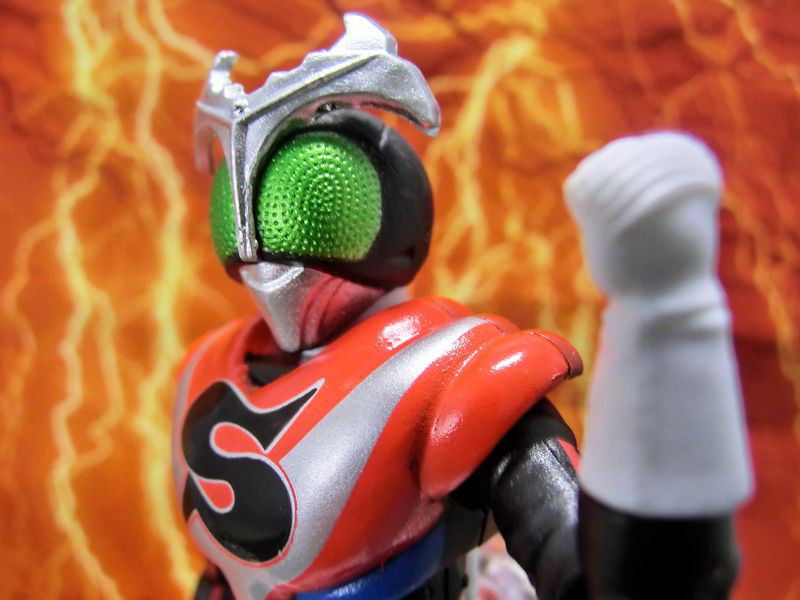 胸のS字マークがぎゅんぎゅん回り、ストロンガーフォームチェンジ!