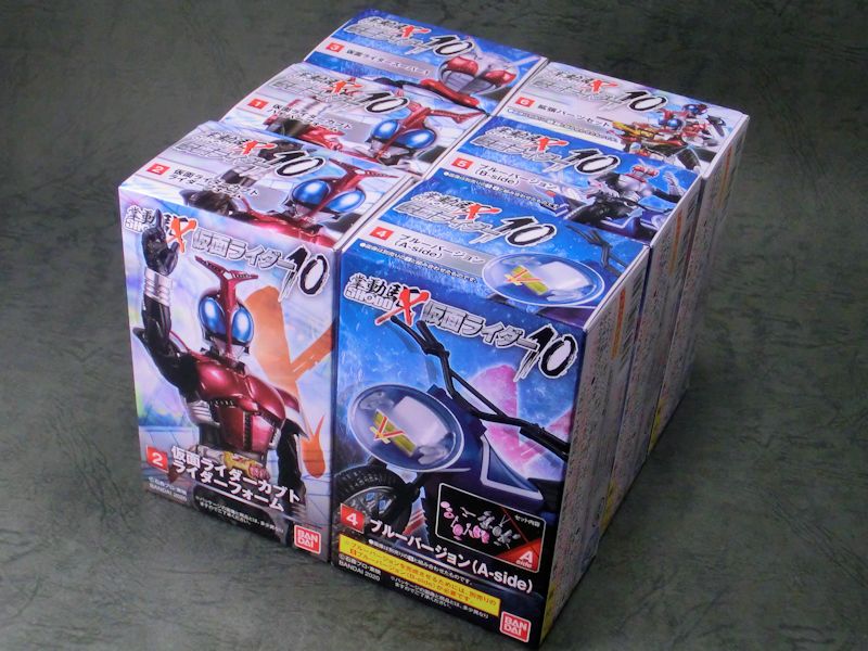 10箱中、カブト、ハイパーカブト、スーパー1、拡張セットが各2箱ずつ。