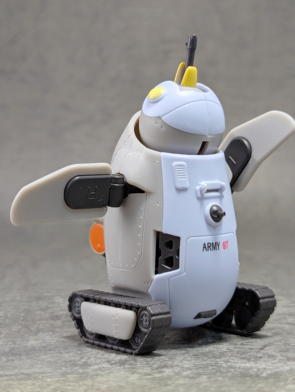 可動箇所は頭部とガトリング砲付きのお口の上下可動に